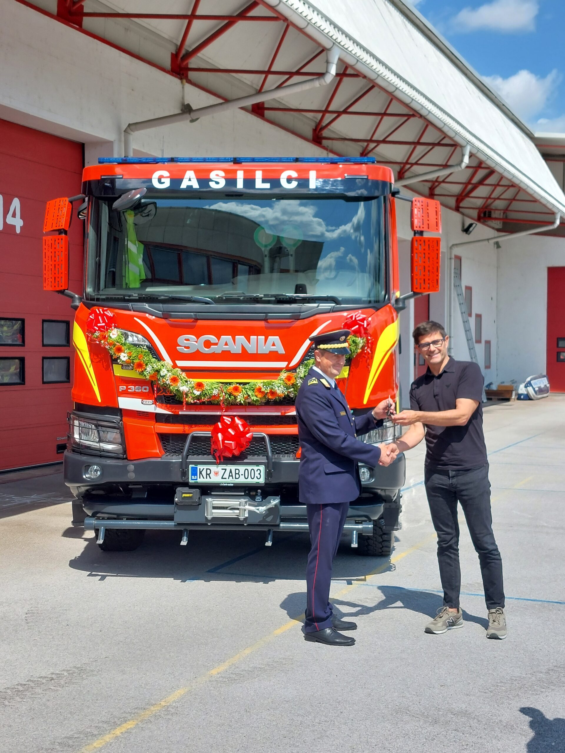 Na dvorišču Gasilsko reševalne službe je 13. junija potekala predaja ključev nove avtocisterne, ki jo je v uporabo prejelo PGD Žabnica. Ključe vozila je predal župan Matjaž Rakovec.